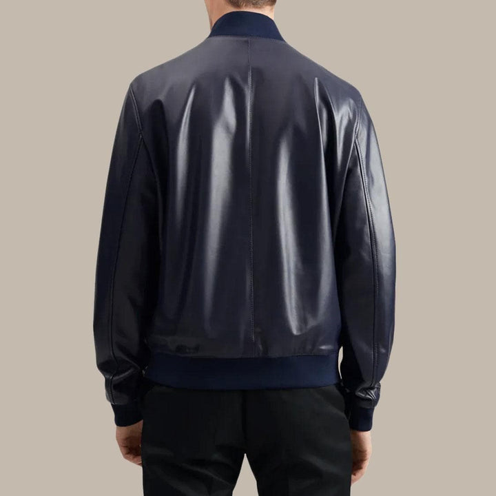 Men’s Blue Leather Bomber Jacket, Handmade Genuine Lambskin Casual Flight Style Ribbed Hems, Classic Slim Fit Lightweight Leather Jacket